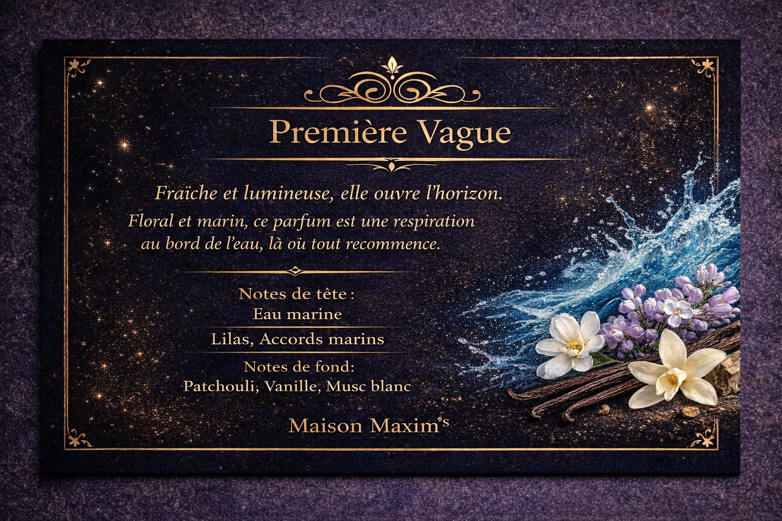 Floral et marin ce parfum est une respiration au bord de l'eau, là où tout commence.