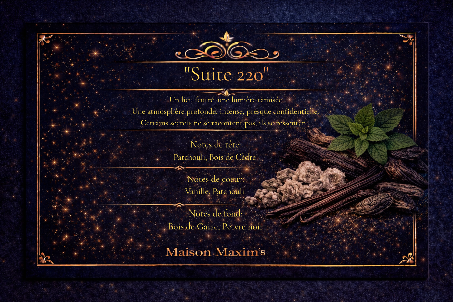 Mystérieux, enveloppant, intensément raffiné. Le parfum d'une nuit qui laisse une empreinte.